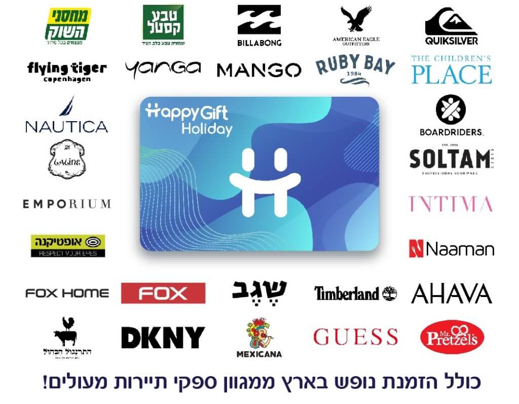 תנו לעובדים את האפשרות להזמין נופש בארץ או בחו"ל מול מגוון ספקי תיירות מעולים! לא רוצים לצאת לחופשה? אין בעיה! הגיפטקארד ניתן למימוש גם ברשתות אופנה ופנאי בפריסה ארצית!